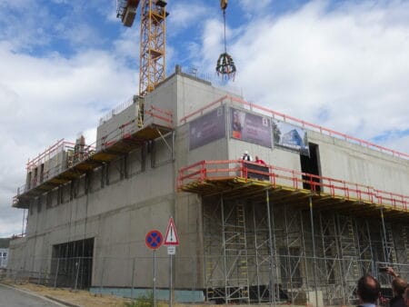 Am 07.07.2022 wurde beim Erweiterungsbau des Fraunhofer-Instituts für Angewandte Optik und Feinmechanik (IOF) in Jena Richtfest gefeiert. An diesem Tag feierte das Institut auch das 30-jährige Jubiläum am Beutenberg-Campus. Es werden neue Laborflächen und Reinräume für Forschungen insbesondere auf dem Gebiet der Quantenforschung geschaffen.