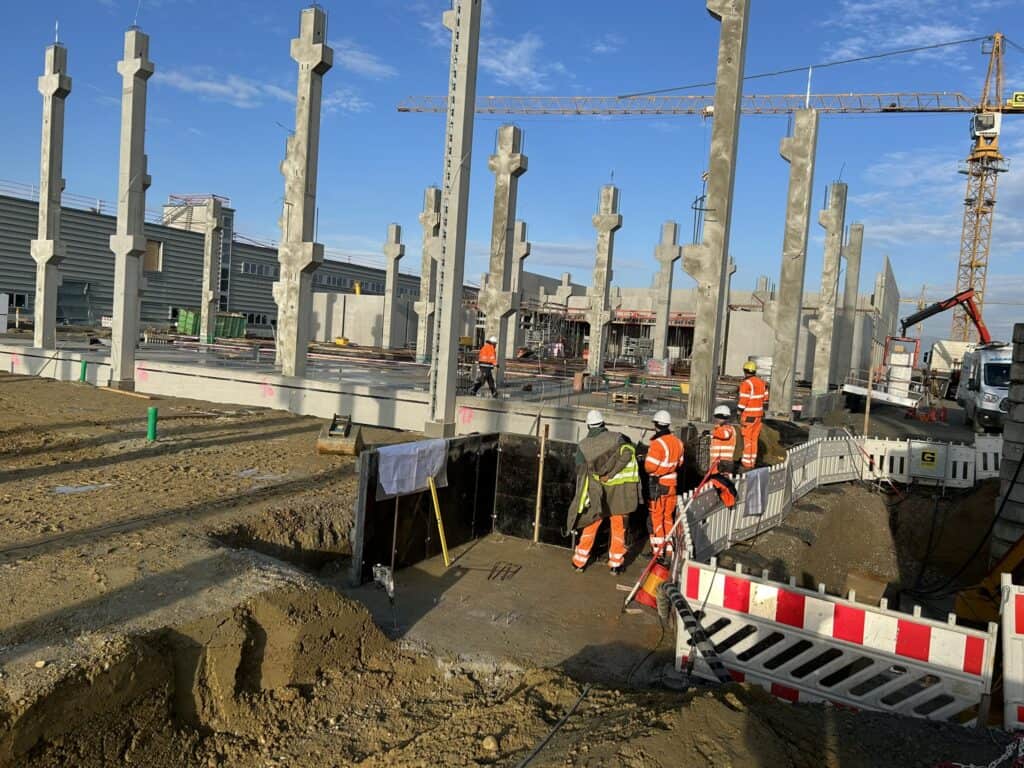 • Ausbildung Trafo-Auffangwannen in Stahlbeton für Havariefall, Trafoeigengewicht 830 kN gemäß Verordnung aus AwSV & WHG